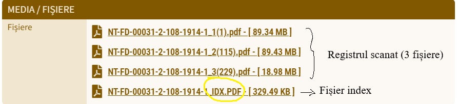 - Identifică fișierul "index" (care se termină în _IDX.pdf - un index cu numele transcrise din registru (perfect pentru o căutare rapidă după nume)