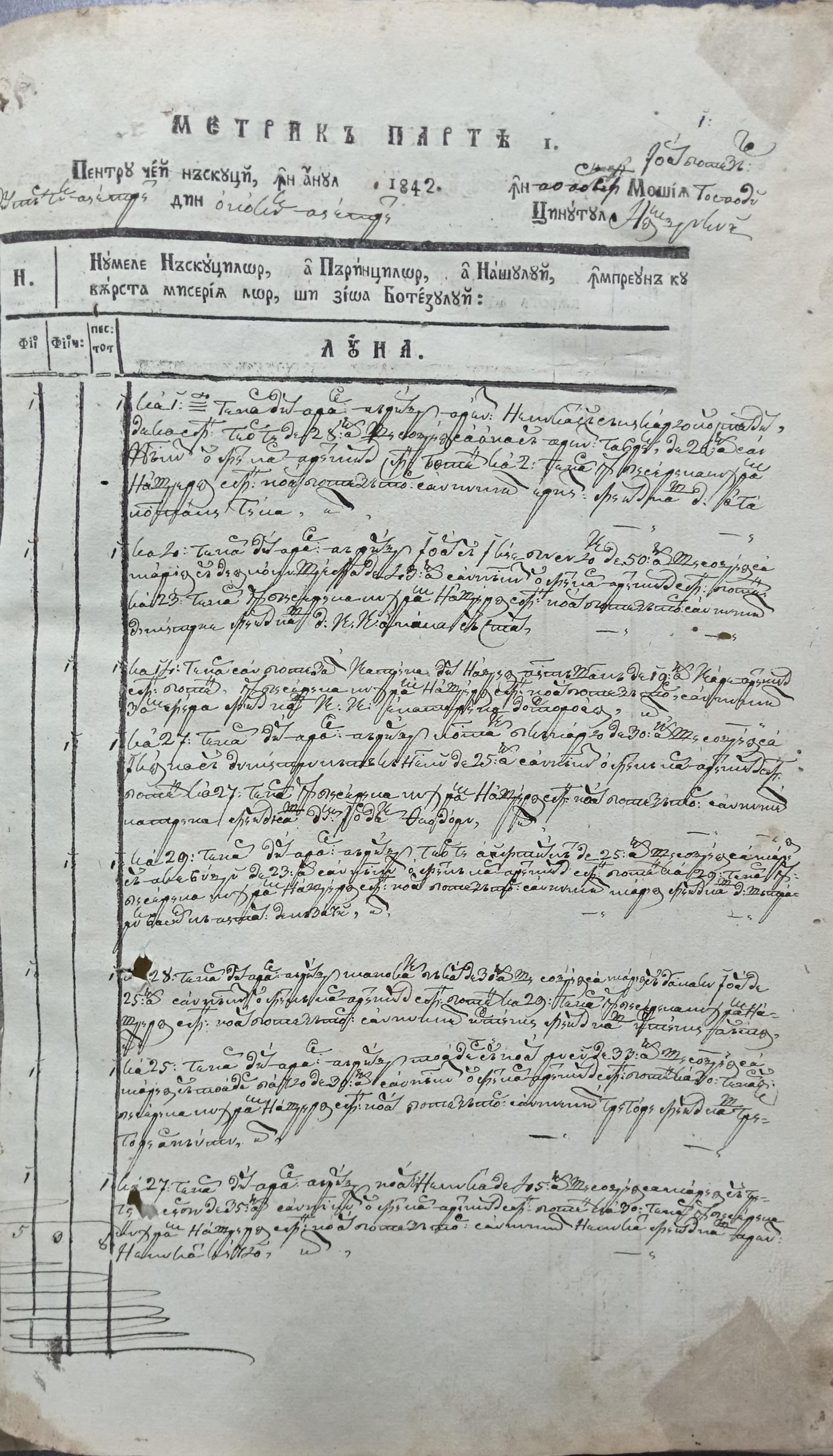 Condica mitricilor partea I pentru născuți din ținutul Neamțului pe anul 1842